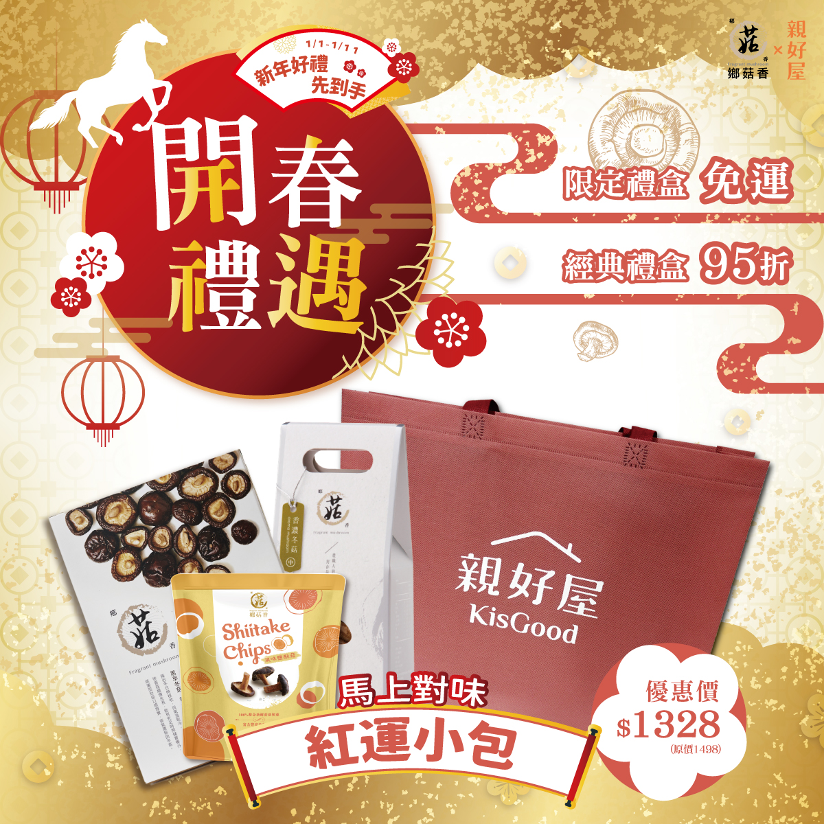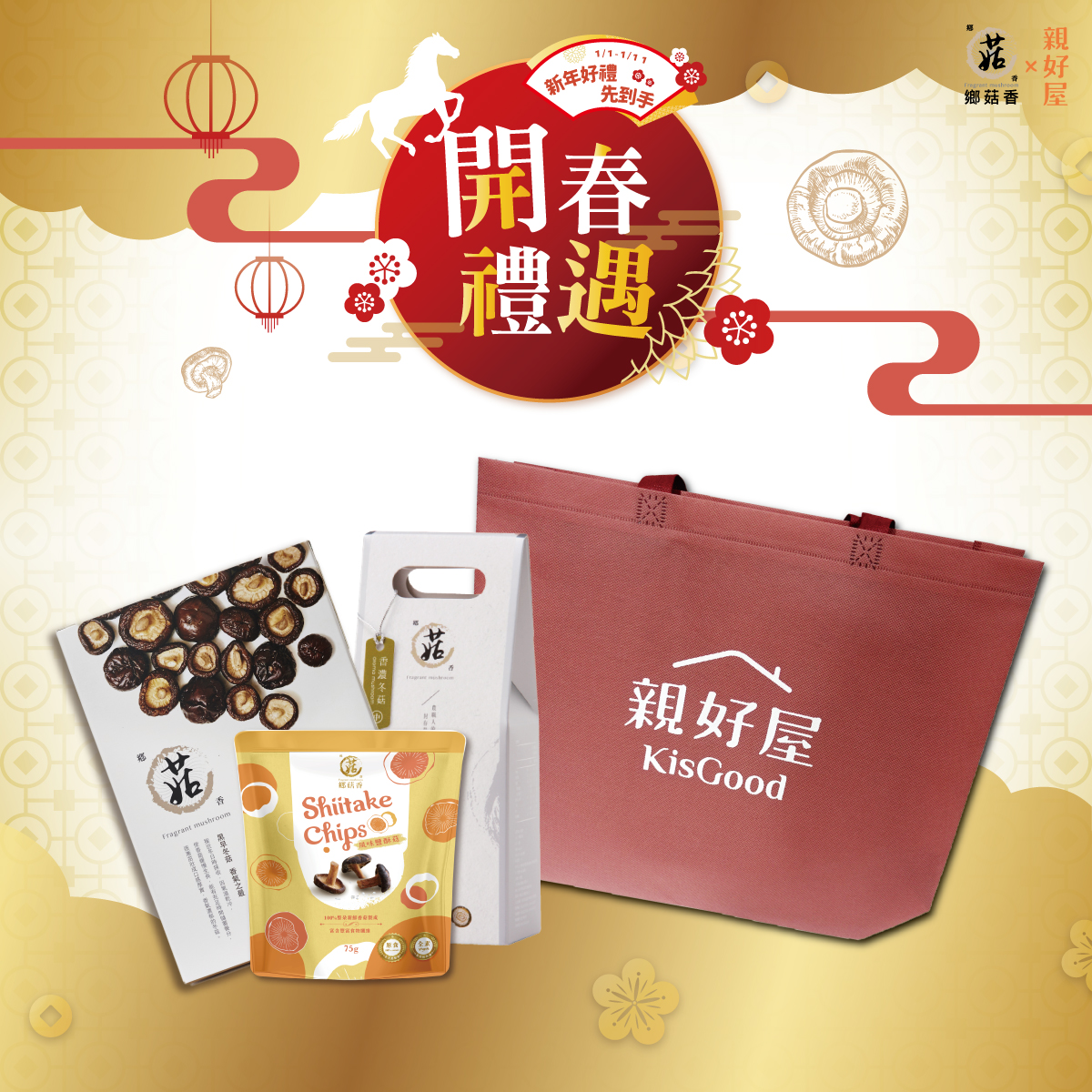 親好屋x鄉菇香帆布袋,內含乾貨及零食,平價不失心意的好選擇