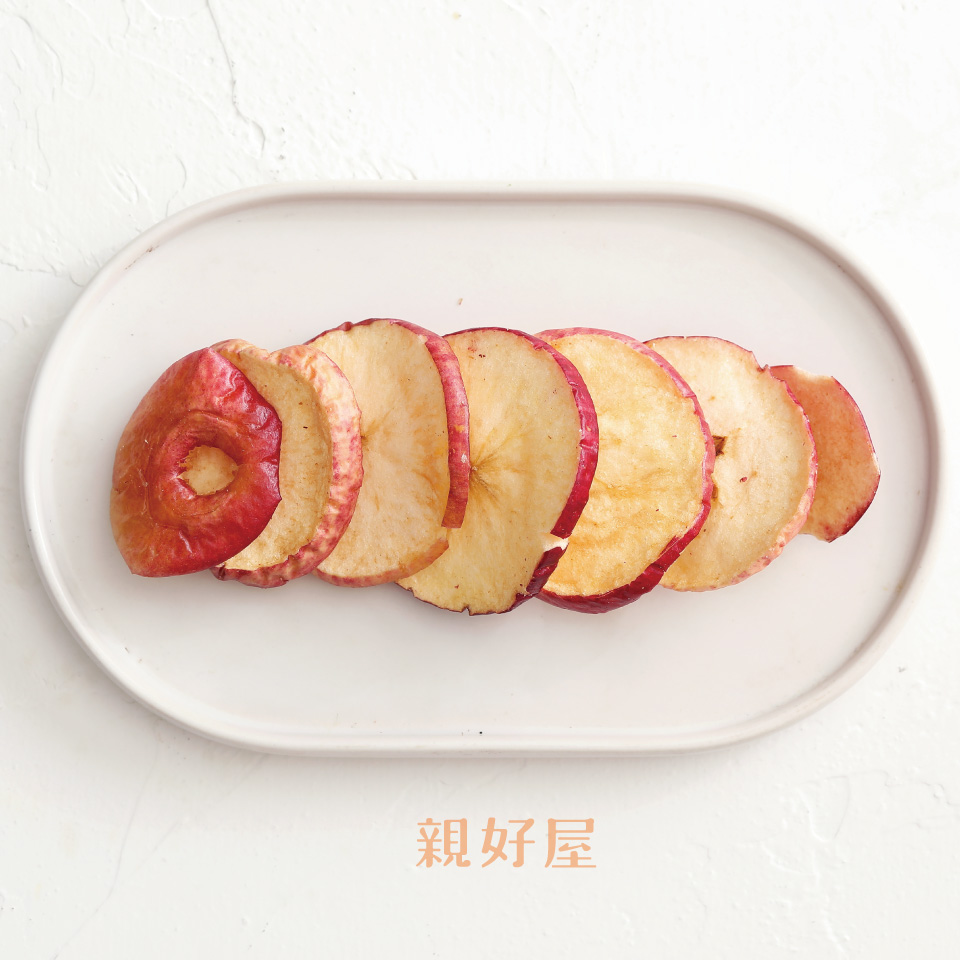 親好屋香甜蘋果脆片簡介。香甜蘋果脆片進口日本富士蘋果,一整顆蘋果連皮切片處理而成,甜味高、口感爽脆、保留富士蘋果營養價值,無添加防腐劑及人工香料