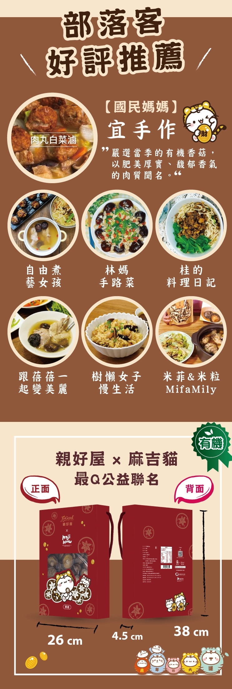 親好屋特別與勵馨基金會合作推出限量公益禮盒, 麻吉貓溫暖可愛的設計配上簡約大方手提禮盒; 有機香菇禮盒是您伴手禮的最佳選擇。 我們送出的不只是一份祝福, 更是我們回饋社會溫馨又實際的正能量。