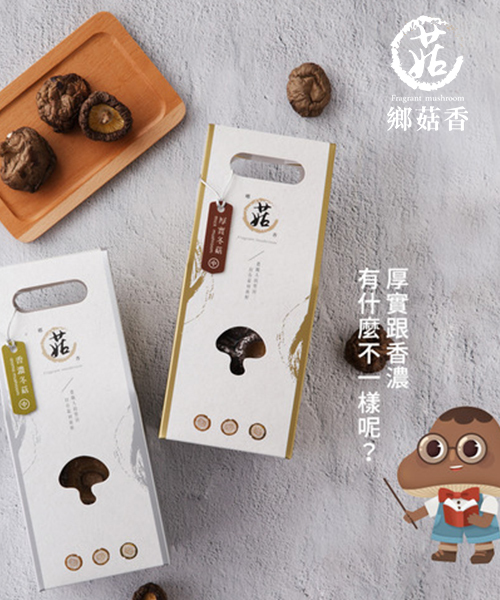 為了幫助在料理上的靈活運用,鄉菇香黑早冬菇,除了以大中小做區別,還分為「香濃冬菇」和「厚實冬菇」兩種款式。